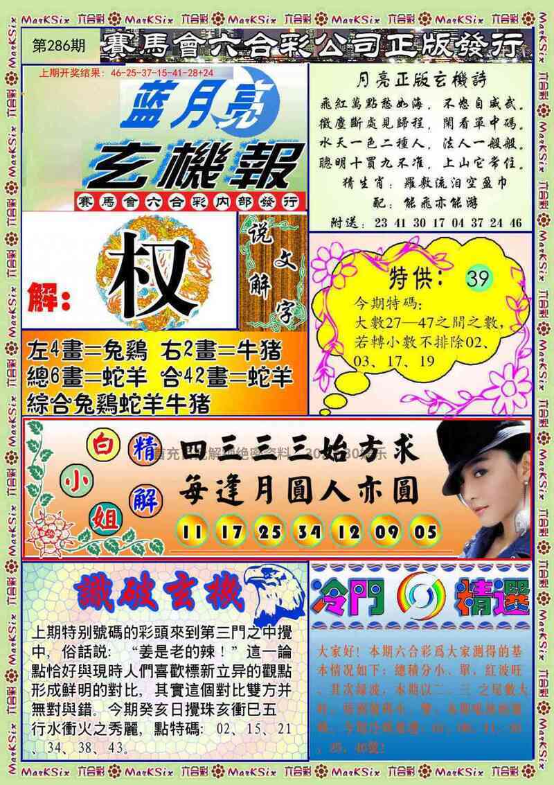 285期 286期 287期 | 兔蛇马龙 | 马24 兔03 猴34 |
